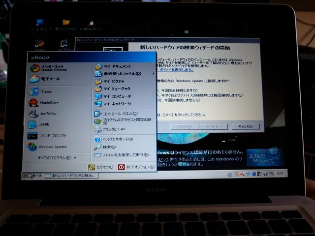 この SSD には、別のマシンで使用していた Windows XP がインストールされているのですが、SSD から起動してみたところ、なんと Windows XP が起動してしまいました。