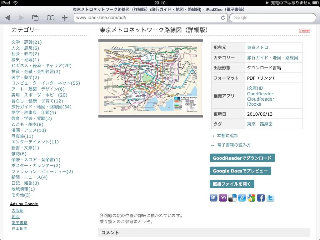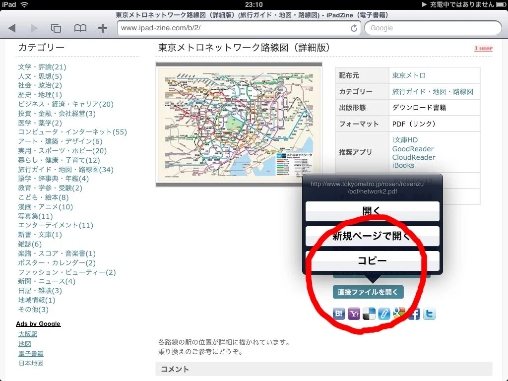 - iPadZine で書籍を探します。今回は東京メトロの路線図をダウンロードしてみます。