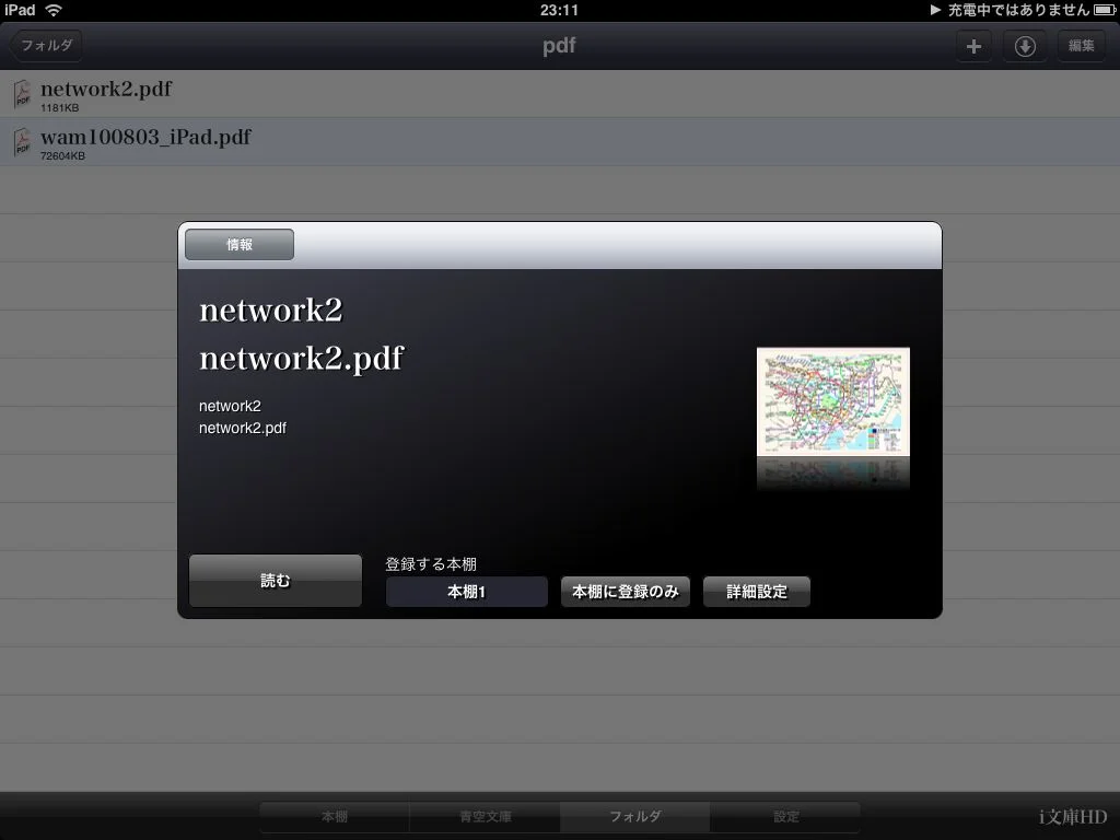 - 右上から「iBunkoHD」を選択すると、i 文庫 HD に登録されます。