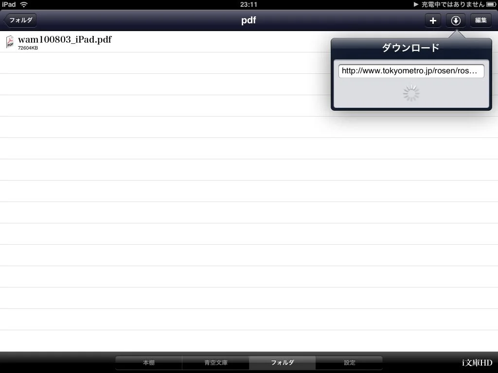 - i 文庫 HD を起動します。画面下部の「フォルダ」を開き、次に右上のアイコン真ん中のアイコンを選択します。テキストボックスの中で長押して、ペーストします。