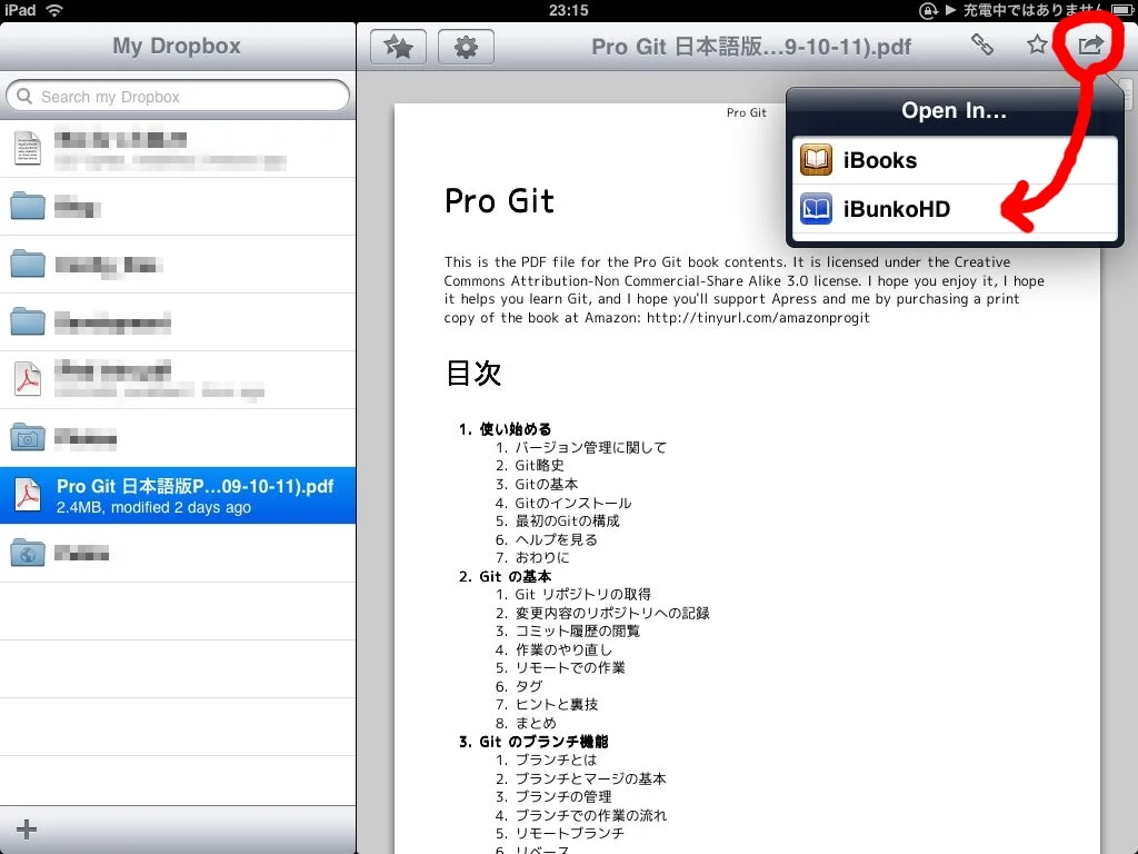 - Dropbox アプリを起動して、目的の PDF を開きます。