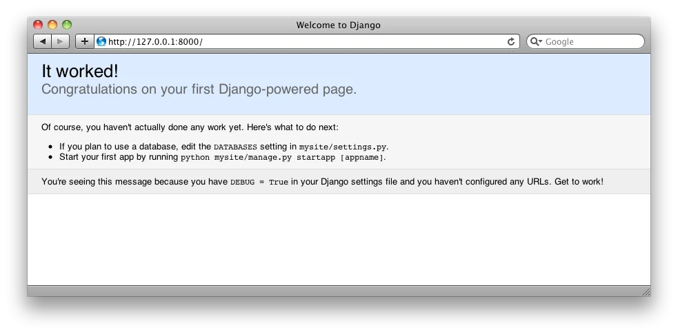 参考:はじめての Django アプリ作成、その 1 — Django v1.0 documentation http://djangoproject.jp/doc/ja/1.0/intro/tutorial01.html