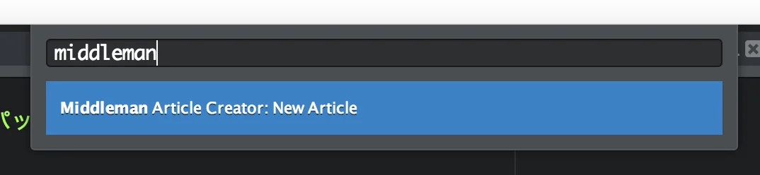 middleman article などで絞り込んで「Middleman Article Creator: New Article」を実行する。